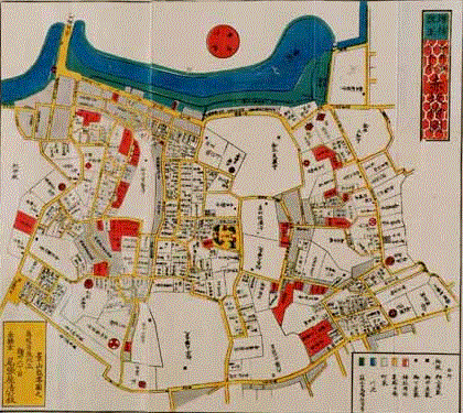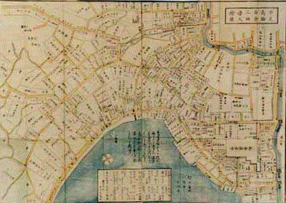 答112 近江屋吾平(近吾堂)と尾張屋清七とです。近江屋のは、先に出され、38枚で江戸市中をカバーしており、淡い3色の絵図でした。尾張屋のは32枚でカバーしており、後から出ましたが、6~7色の原色に近い色で美しく見やすいとして、近江屋のを追い抜く人気だったそうです。 国土地理院のホームページから 左(上)は高輪白金付近(近江屋吾平) 右(下)は赤坂絵図 (尾張屋清七)