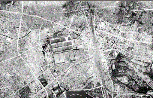 答108 戦後の国土の変遷を、空撮写真でたどれるサービスです。インターネットで手軽に閲覧できるよう、空中写真のゆがみを補正してつなぎ合わせ、今の地図に重ねて表示できるようにしてあります。新聞には、今の新宿西口、高度成長期、終戦直後(画像参照)の3時期の空中写真が並べて掲載されていました。このサービスは3月25日から行われています。朝日新聞でデジタルから